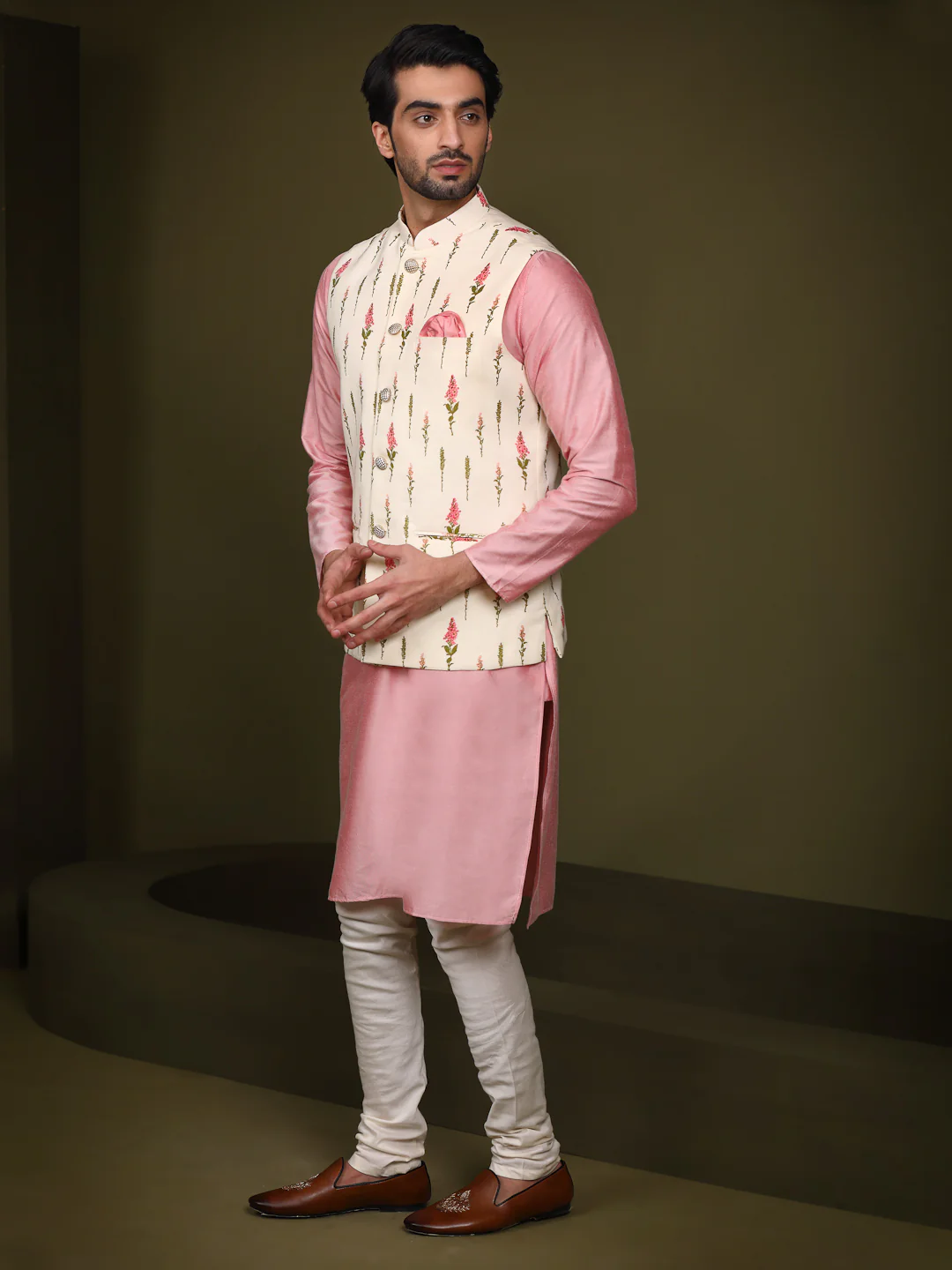This Kurta and Jacket set can be an outfit for any occasion. The colour combination and the silhouette gives a charm of elegance and comfort adding a dash of soft look.