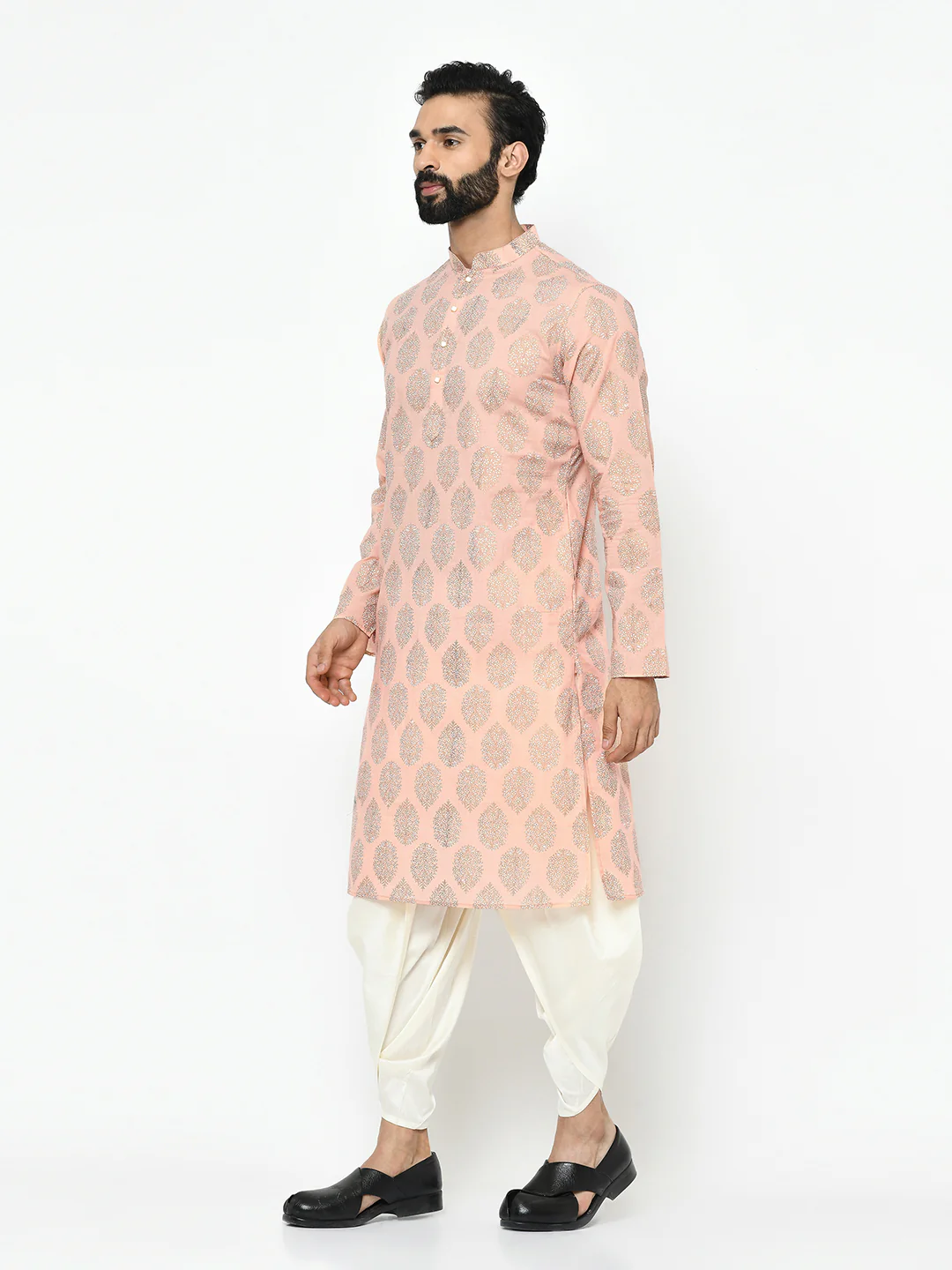 The Kisah kurta Sets is ideal for men looking for stylish yet comfortable attire. Crafted from Cotton Blend fabric, Pink color, stylish pattern, and comfortable fit make it perfect for festive wear.