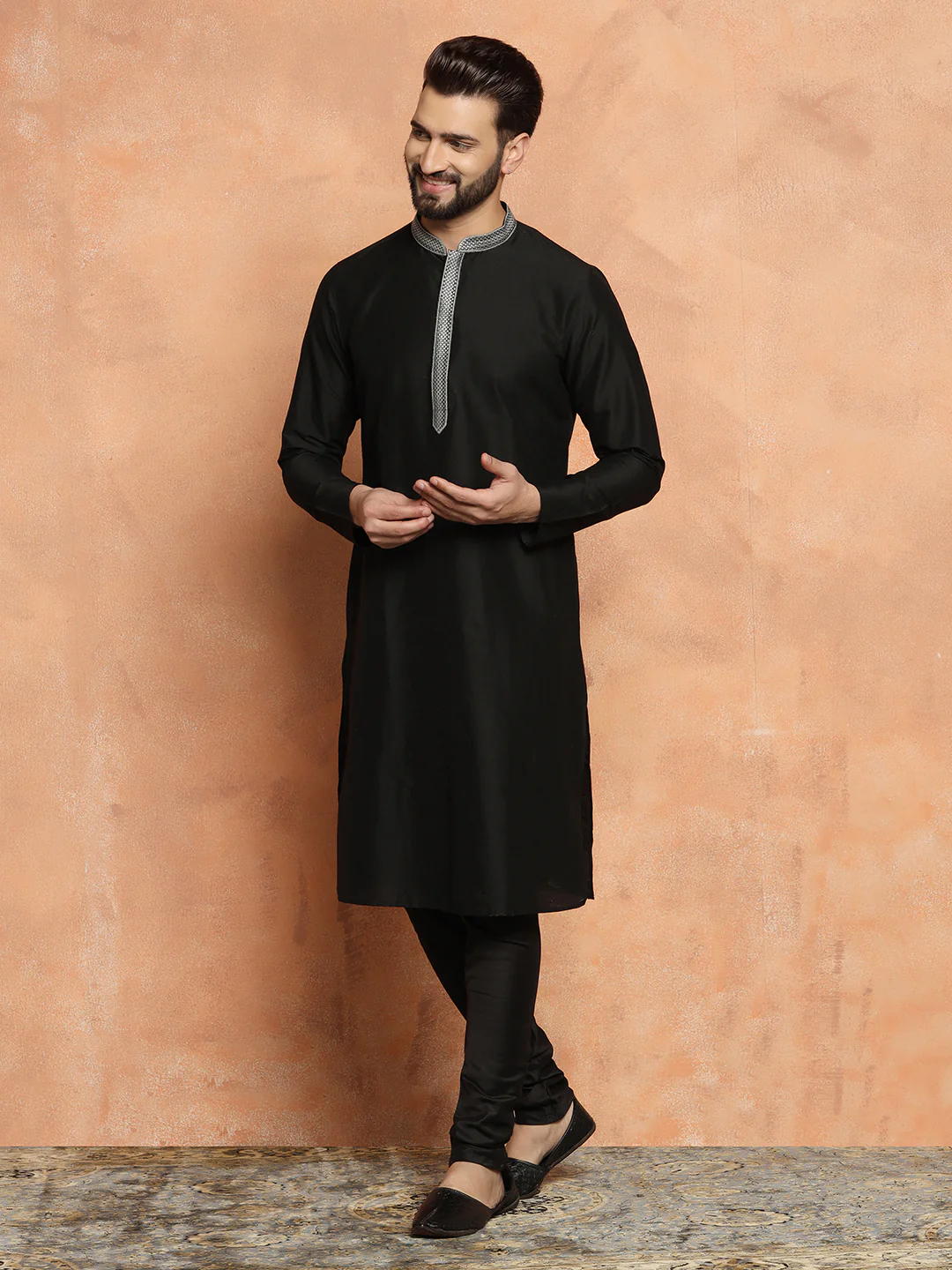 Black Cotton Silk Kurta Churidar Set