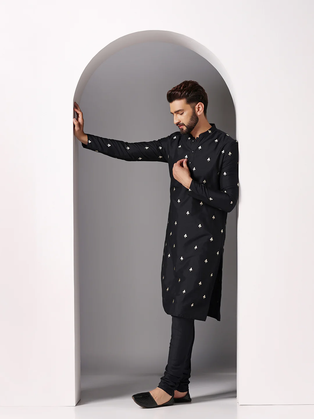 This Kurta Churidar Set with Black Color is an elegant mandarin collar style that is perfect for occasional wear. With a full sleeve Stylish design and comfortable fabric, it will make you look stylish.