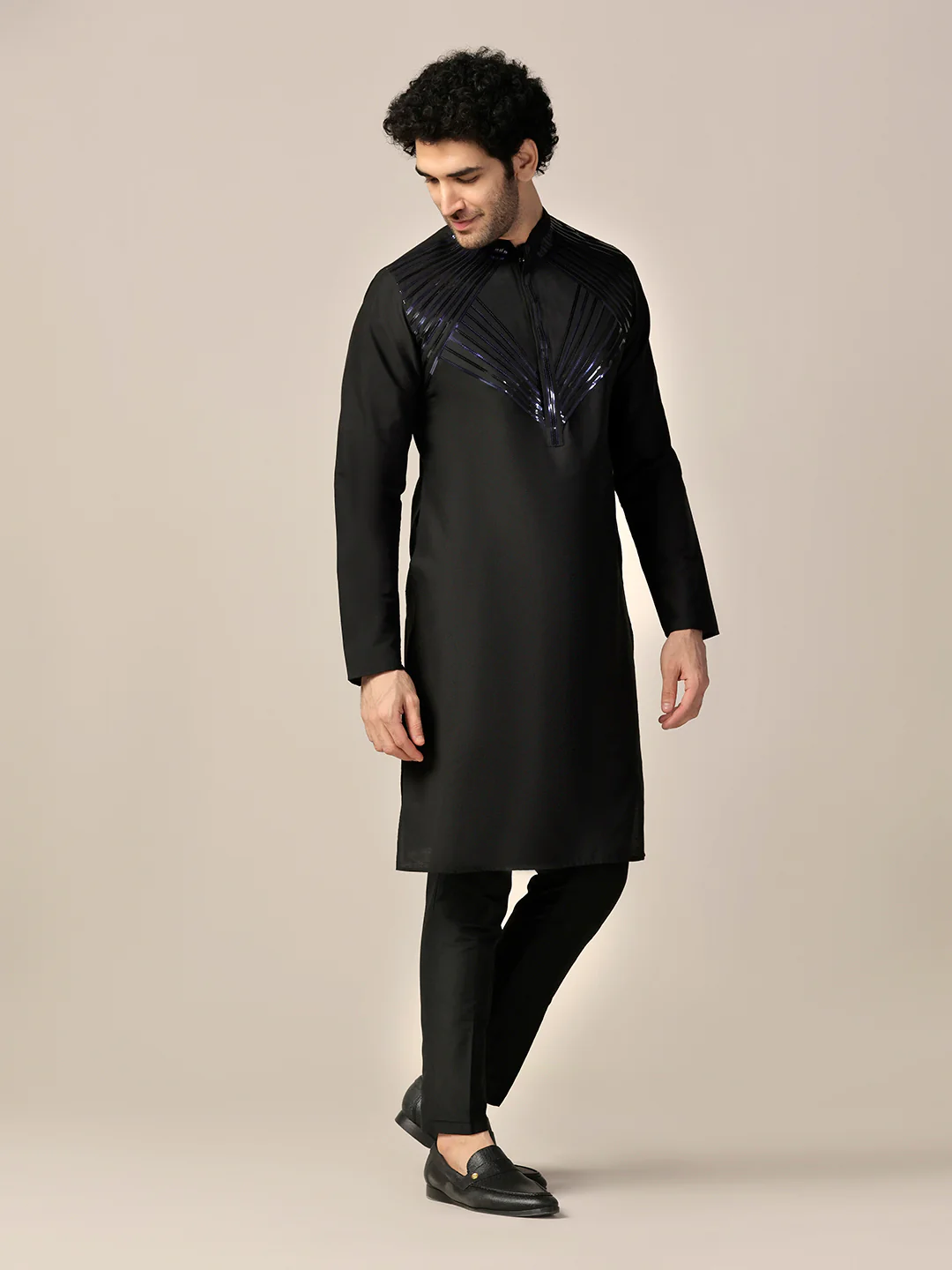 This Black Kurta Trouser Set is a yes for all your casual occasions. The Kurta is of Cotton Blend which adds on to the defined and modern look. This set includes Bottomwear to complete your look