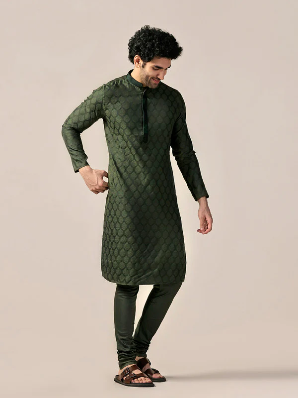 Bottle Green Silk Jacquard Kurta