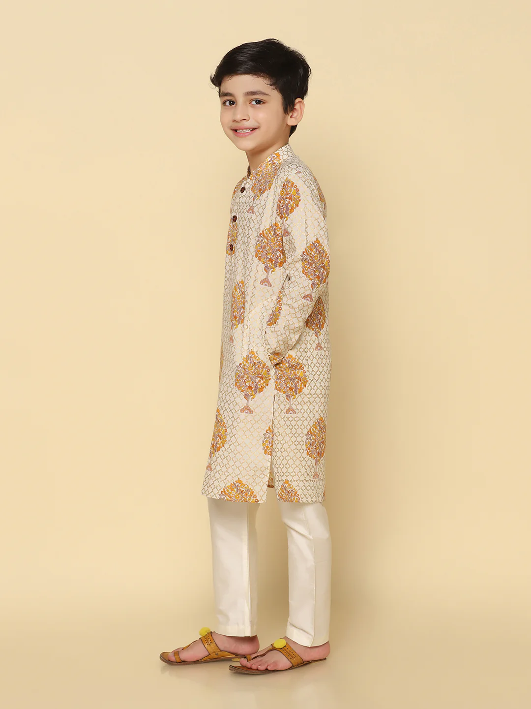 -70%Boy's Yellow Printed Kurta—