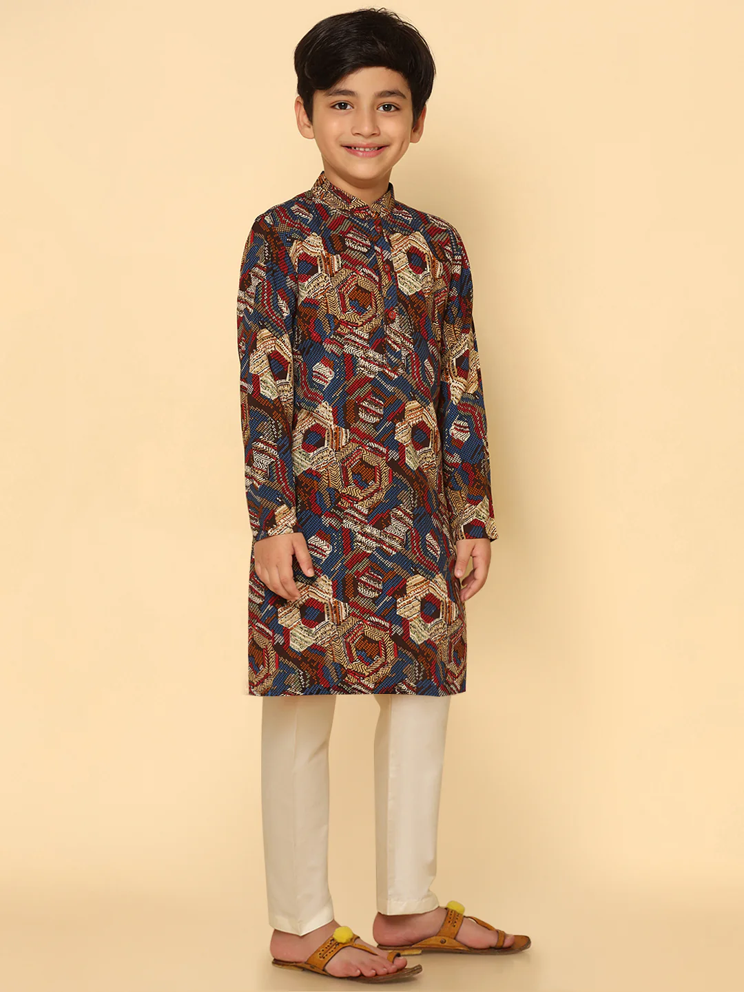 This Kurta is just perfect for festivals, or any kind off occasions. Its mandarin collar, style gives a charming look, this classic design is made from Cotton Blend fabric with Printed patterns and comes in Maroon colours. Perfect for any occasion.